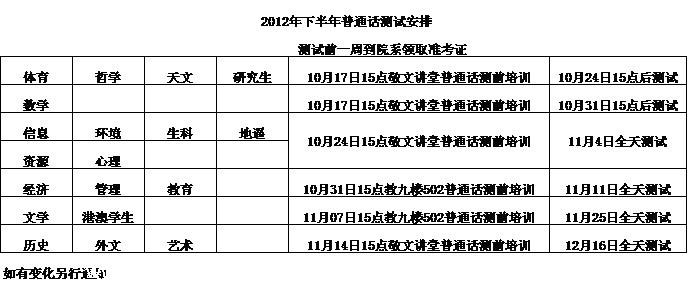 2012普通话测试安排通知