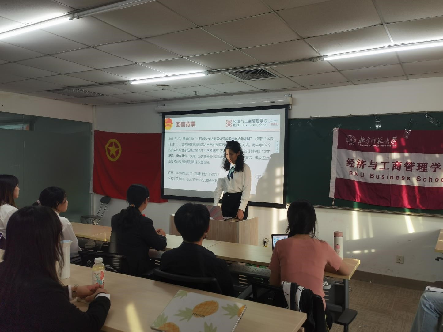 2022年9月24日,纽约国际588888线路检测中心团委、学生会以及研究生会成员共聚京师大厦9407。在这里,我们共同学习习近平总书记给纽约国际588888线路检测中心“优师计划”师范生的回信,聆听总书记的谆谆教诲,坚定理想信念;共同回溯李大钊先生、鲁迅先生和宋庆龄女士那波澜壮阔的一生,感受那片铁血丹心。