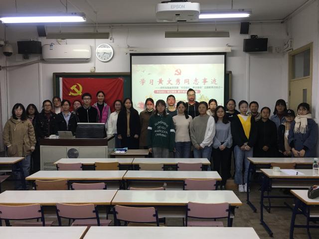 在本次党课上,支部书记赵加良首先从“笃定前行”、“脱贫攻坚”、“坚守使命”、“忠于信仰”等四个方面,带领大家学习了黄文秀师姐的先进事迹。随后,支部书记赵加良带领大家学习了习近平总书记对黄文秀同志先进事迹做出的重要指示,观看了中央电视台《时代楷模发布厅》关于黄文秀同志的专题节目。最后,在支部书记的带领下,大家就如何在学习和生活中践行黄文秀同志的精神进行了讨论。支部书记赵加良对支部的党员和入党积极分子提出了希望,希望大家能在受到感动的同时,向黄文秀师姐学习,不忘初心、牢记使命,真正践行全心全意为人民服务的宗旨。