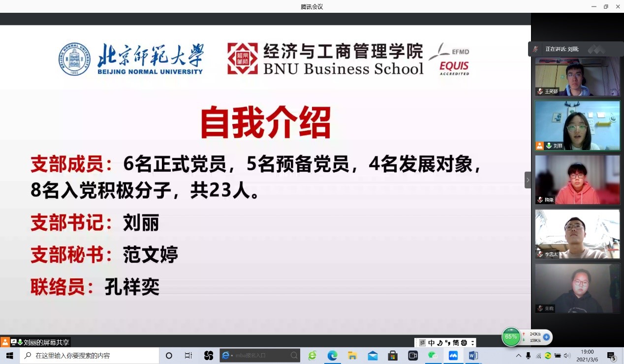首先,在刘丽同志的主持下,支部全体成员逐一进行了自我介绍,大家彼此之间增进了了解,为今后的进一步交流、学习打下了基础。