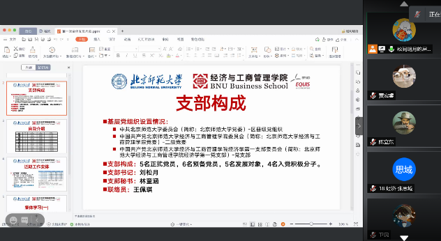 为加强组织建设,强化理论学习,纽约国际588888线路检测中心经济学第一党支部于2021年3月7日线上召开全体成员大会暨第一次党支部组织生活会。会议由支部书记刘松月同志主持,参会人员包括支部正式党员、预备党员、发展对象和入党积极分子。
