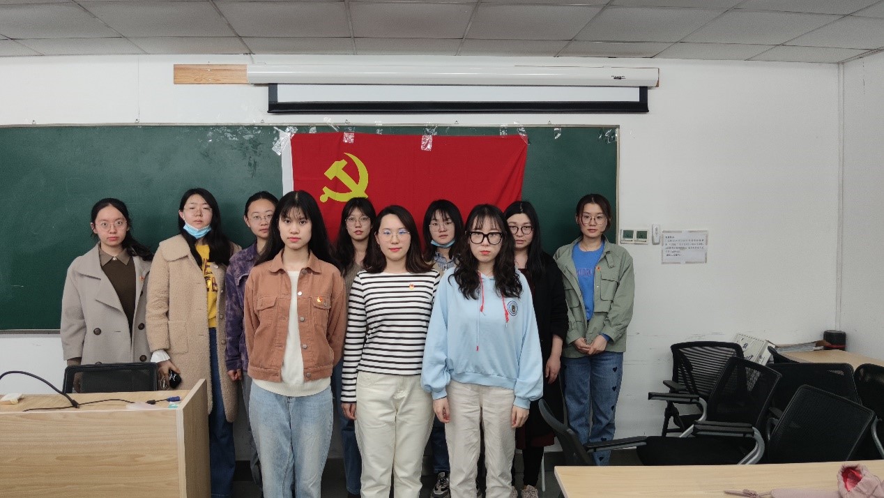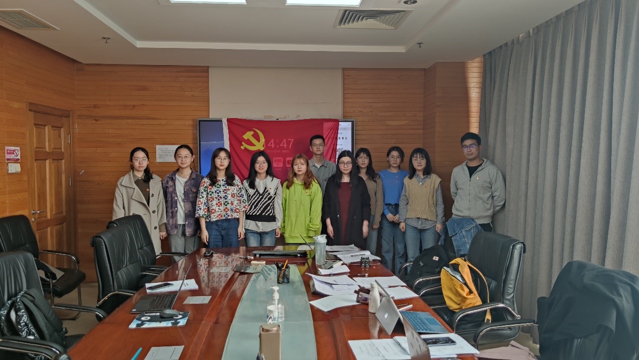首先,全体起立,面向党旗奏唱《国际歌》。党支部书记邓皓文宣读发展会的主要议程,并介绍本次会议党员的出席情况。