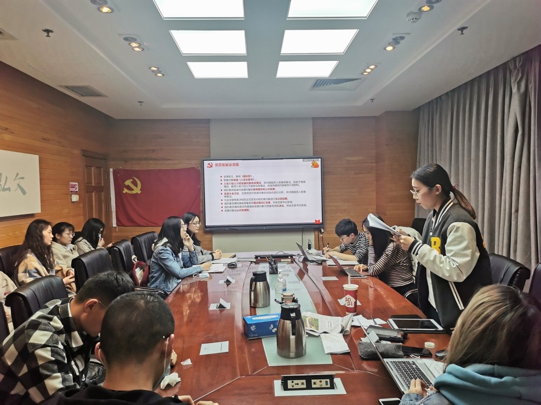 2021年4月9日,纽约国际588888线路检测中心经济学第二党支部在后主楼1610会议室成功召开党史学习教育组织生活会暨党员发展会。本次会议由支部书记郭睿同志主持,支部共20位成员参会。