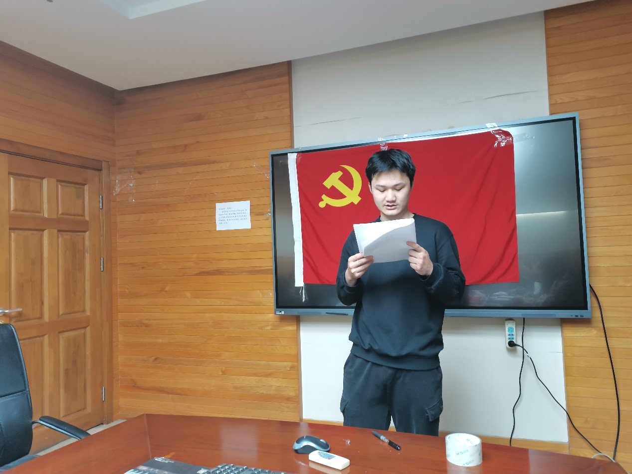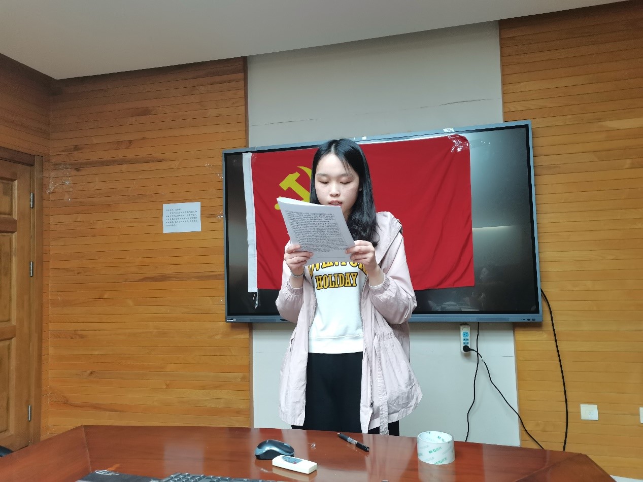 随后,发展对象在党旗下宣读《入党志愿书》,汇报本人对党的认识、入党动机、本人履历、家庭和主要社会关系情况,发展对象均真诚地表达了对党的向往和为共产主义事业奋斗终身的愿望,并全面剖析了自身的优缺点;两位入党介绍人(教师入党介绍人、学生入党介绍人)介绍发展对象的有关情况;支部秘书易萌同志宣读发展对象的政审报告和公示结果。