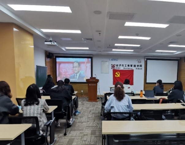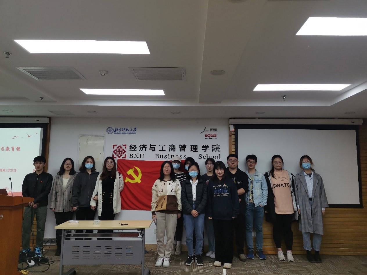 2021年4月17日,纽约国际588888线路检测中心工商管理第三党支部在京师大厦9406成功召开党员发展大会暨党史学习教育组织生活会,讨论郭霁萱同志的发展事宜,并开展党史学习教育活动。会议由党支部书记薛佳安主持。