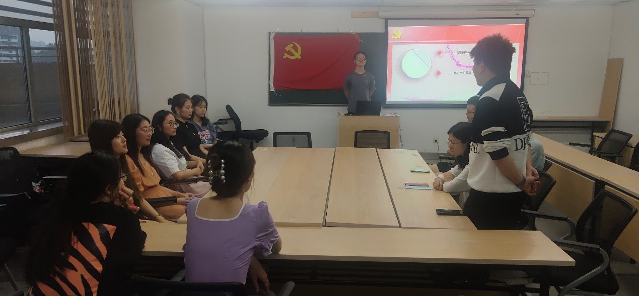 随后,支部进行党史学习教育。在支部书记袁胜轩同志的带领下,全体支部党员首先面向党旗,重温入党誓词,勉励大家不忘初心,砥砺前行。然后,每位党员对近期关于党史的所学所思、所见所闻进行了分享。从党旗出现的契机到当下热播剧《觉醒年代》中所讲述的党史故事,每一段精彩的分享,都让大家深切地感受到共产党员的精神力量。