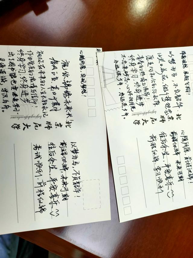 在欢送毕业生党员环节,支书发放了学院党建毕业纪念文件袋,每位党员在明信片上留下了对毕业生党员的寄语与期望,希望她们未来一切顺利,前程似锦。