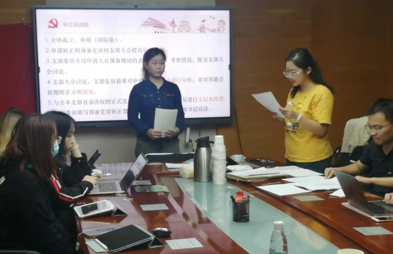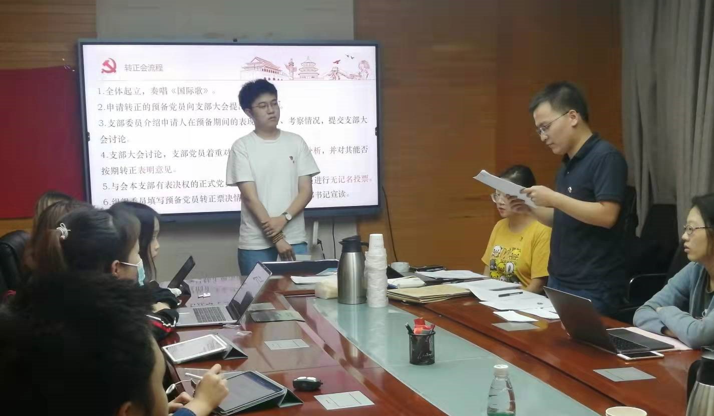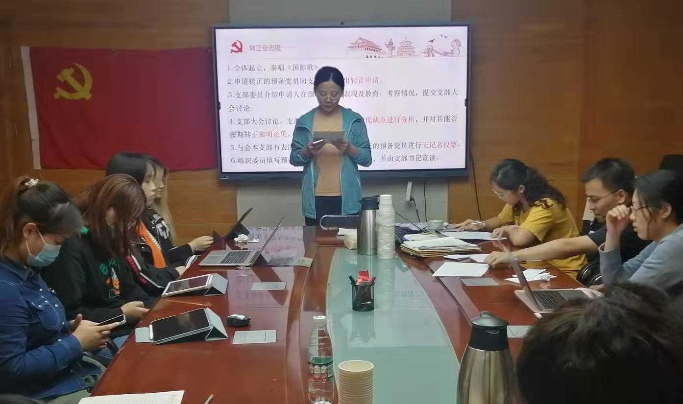 2021年9月24日,纽约国际588888线路检测中心金融学第四党支部在后主楼1610会议室召开组织生活会暨预备党员转正会。会议由支部书记赵新宇同志主持。