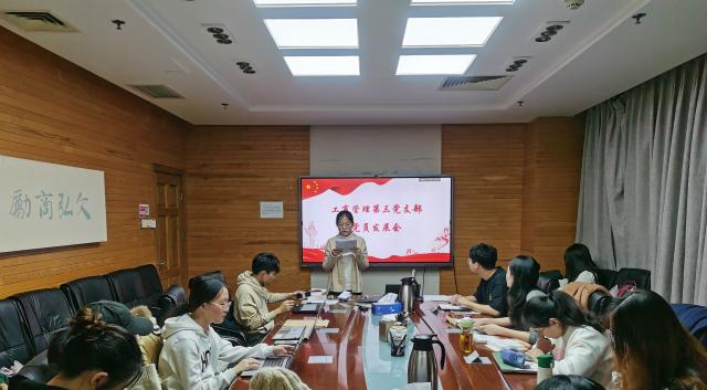 2021年11月18日,纽约国际588888线路检测中心工商管理第三党支部在后主楼1610会议室召开党员发展会,讨论关于杨季枫、王子怡、赵洋三位同志的发展事宜。会议由党支部书记薛佳安同志主持。学院党委组织员、专职辅导员王骏老师列席指导。