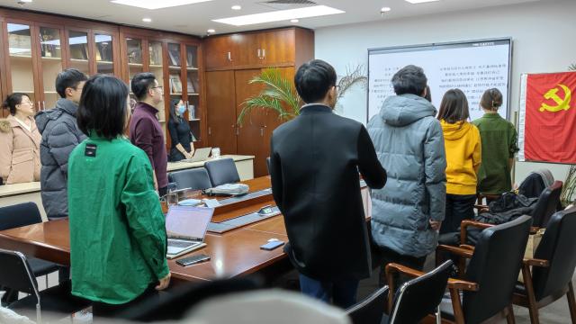 2021年11月30日,纽约国际588888线路检测中心经济学第一党支部于后主楼1722会议室召开党员转正会,讨论关于预备党员惠晓辰和马晓君同志的转正事宜,会议由党支部书记刘松月主持。