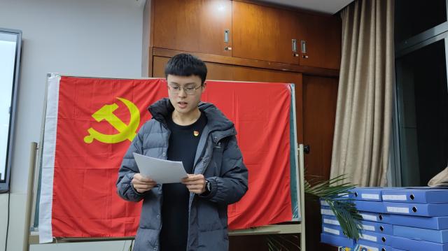 随后,支部依次讨论了惠晓辰和马晓君同志的转正事宜。惠晓辰同志在党旗下宣读《转正申请书》,汇报了自己在预备党员考察期间的思想,学习和生活情况。惠晓辰同志表示,在预备党员考察期间,他认真学习党史党章,用先进思想武装自己头脑,特别注重对党指导思想的学习,同时也对其时间规划不合理等缺点做出反思,他承诺将加强学习深度,牢记初心使命,继续前进。刘松月同志介绍其在预备党员考察期内的表现,与会党员充分讨论其优缺点并提出改进意见,6名与会正式党员采用无记名投票的方式对是否同意其按期转为正式党员进行表决,大会通过王佩琪同志计票、王盈斐同志监票,刘松月同志依次宣读票决情况汇总表和大会决议,大会通过惠晓辰按期转为正式党员的申请。会后惠晓辰同志表达了对支部成员的感谢,并将虚心接受大家提出的宝贵意见,努力成为一名优秀的中国共产党员。