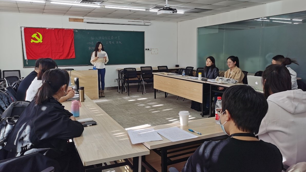 会议在雄壮的《国际歌》中开始,全体起立共唱《国际歌》。党支部书记孙琳媛向与会人员报告会议出席情况,到会正式党员人数超过支部正式党员半数,并向与会人员强调了党员发展会的要求与程序。