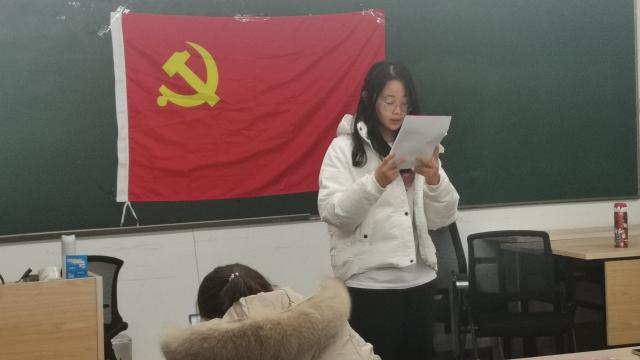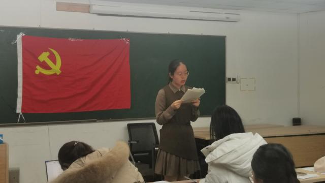 首先,全体党员起立,面向党旗齐唱《国际歌》。党支部书记董敏宣读转正会主要议程,并介绍本次会议党员的出席情况。