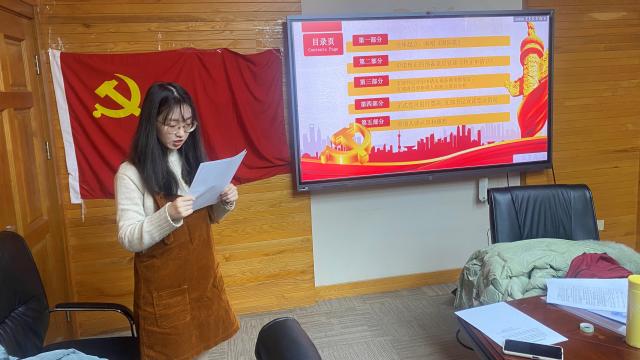 李妍姝同志在党旗下宣读转正申请书,汇报了成为预备党员一年来的思想、工作、学习的情况。李妍姝同志表示,她一年中不断提高自己的思想觉悟,在实践中加强锻炼,坚定了信念,夯实专业知识基础,实践中全心全意为人民服务,能够经常深刻反思自己并积极改正。她指出了自己仍存在的诸多不足之处,并提出了改进计划。