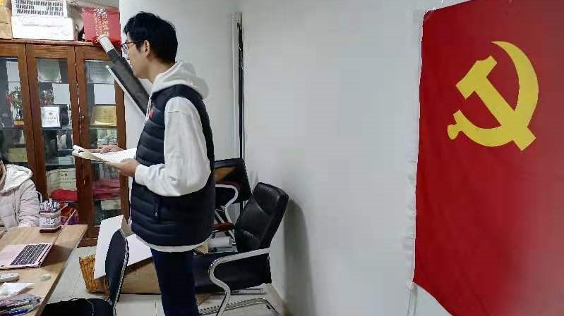会议开始,全体党员起立,面向党旗齐唱《国际歌》。党支部书记徐盛怡介绍转正会议议程及本次会议党员的出席情况。