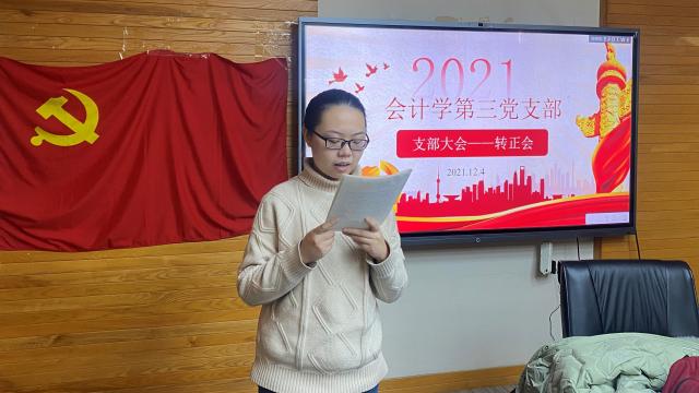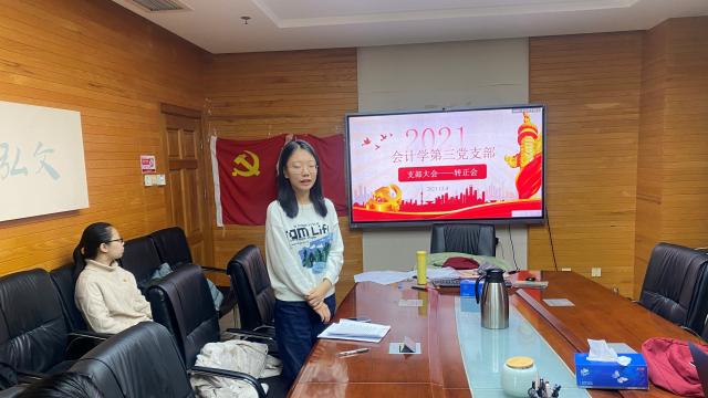 2021年12月4日和11日,纽约国际588888线路检测中心会计学第三党支部分别于后主楼1629会议室和1610会议室召开党员转正会,讨论关于王小龙、李妍姝、冒雅言、孙琳、阳强琳等五位同志的转正事宜。会议由党支部书记徐盛怡主持。