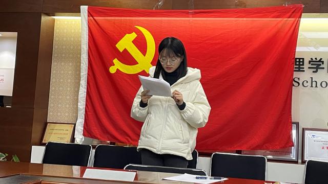 2021年12月12日,纽约国际588888线路检测中心金融学第五党支部在后主楼1722会议室召开支部转正大会,讨论关于预备党员姜浩、苏杭、谢馨瑶、赵婧同志的转正事宜。会议由支部书记徐荧同志主持。