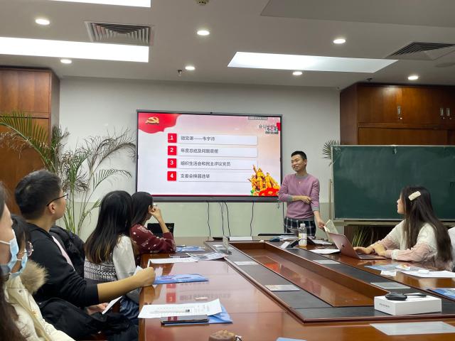 2022年1月3日,纽约国际588888线路检测中心经济学第二党支部于后主楼1722会议室召开组织生活会,支部13名正式党员、8名预备党员出席会议。本次会议共有五项议程:一是集体理论学习;二是2021年度支部工作总结及问题查摆;三是开展批评与自我批评;四是开展民主评议党员;五是支委会换届选举。会议由党支部书记郭睿同志主持。