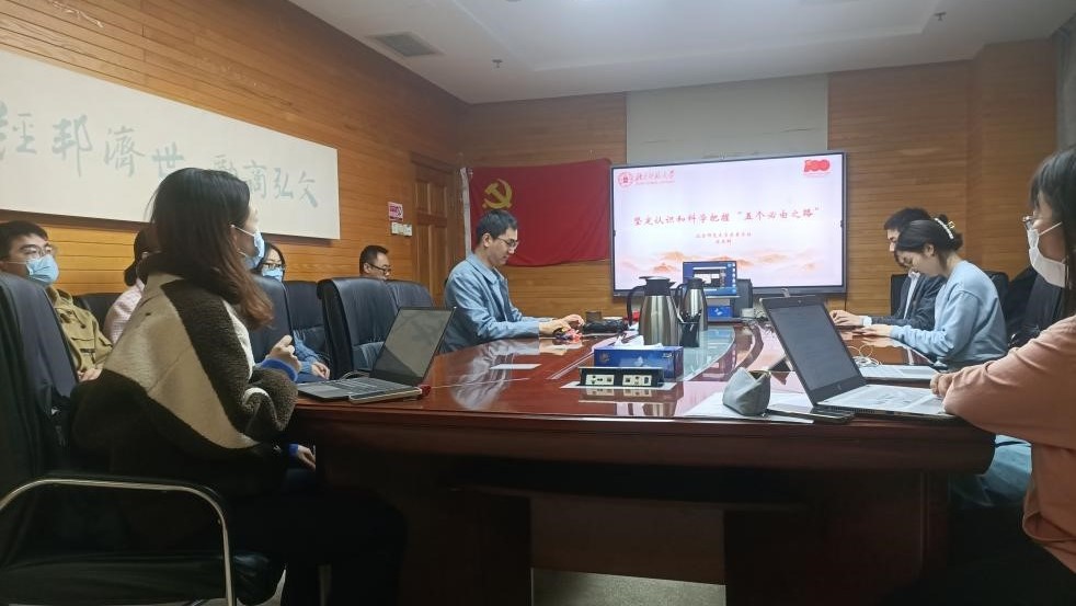 2022年3月29日,纽约国际588888线路检测中心会计学第三党支部于后主楼1610会议室举办主题党课活动。本次党课的主题是“坚定认识和科学把握五个’五个必由之路’”。主讲人为纽约国际588888线路检测中心求索学社社长、马克思主义学院2020级硕士研究生石卓群。学院党委组织员王骏参加了本次活动。