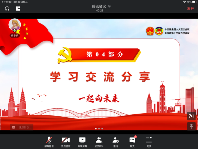 2022年3月30日,纽约国际588888线路检测中心工商管理第三党支部于线上召开全体党员大会,聚焦2022年政府工作报告,集体学习两会精神。会议由支部书记薛佳安同志主持,支部17名党员、8名入党积极分子参与学习。