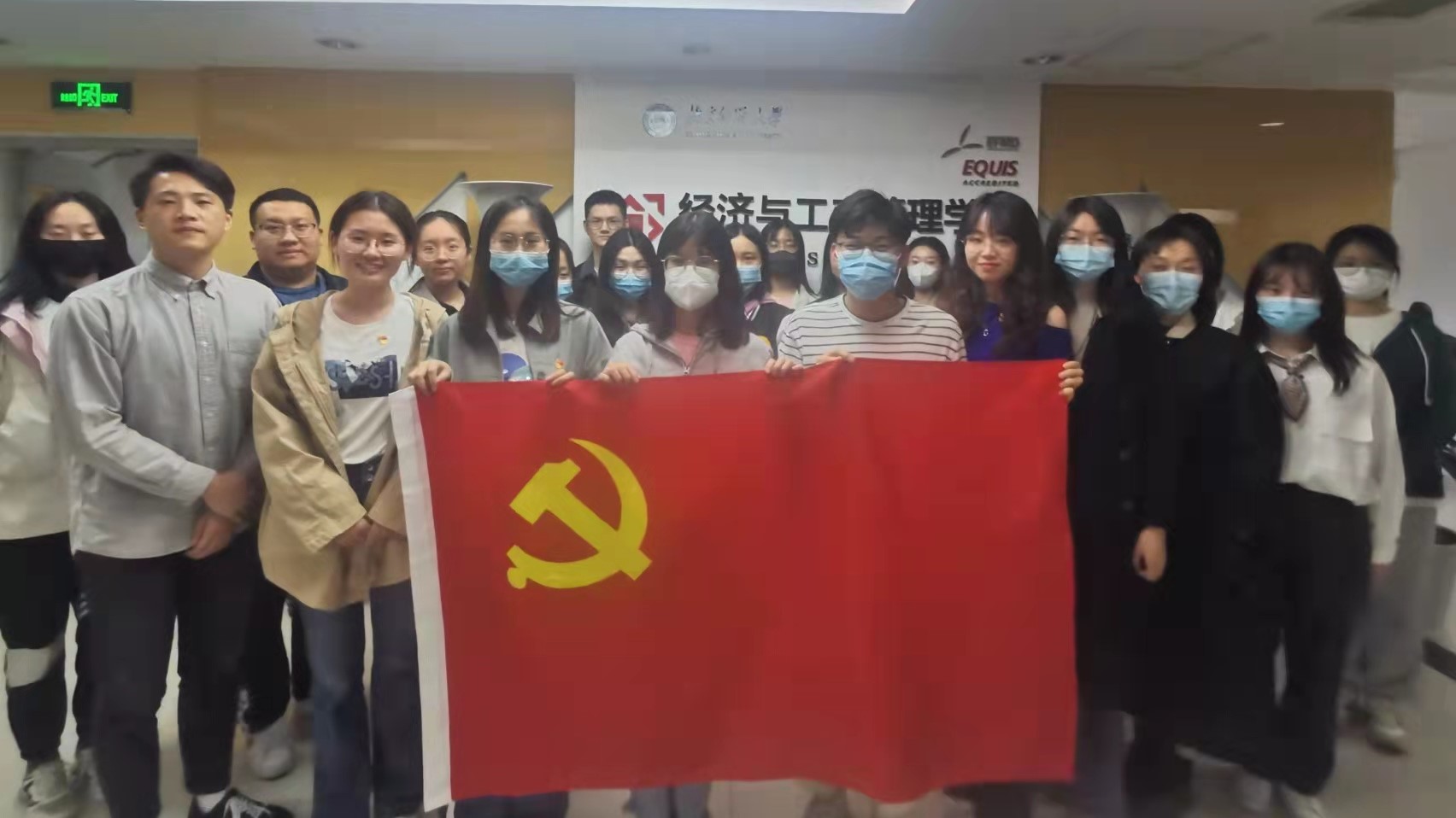 会议开始,全体党员起立,面向党旗齐唱《国际歌》。首先支部书记董敏介绍会议议程及本次会议党员的出席情况。随后,支部依次讨论九位同志的转正事宜。九位预备党员分别在党旗下宣读《转正申请书》,汇报自己在预备党员考察期间的思想、学习和生活情况。支部组织委员李睿萌同志负责介绍其在预备党员考察期内的表现。紧接着,到场的正式党员对申请转正的预备党员的优缺点展开讨论,分别从同志们的学业、工作、理论学习、参与支部建设以及与支部成员互动等方面对申请转正的预备党员进行了评价,对他们能否按期转正表明了意见,为他们提出了未来的改进方向,并表达了对他们的期许。
