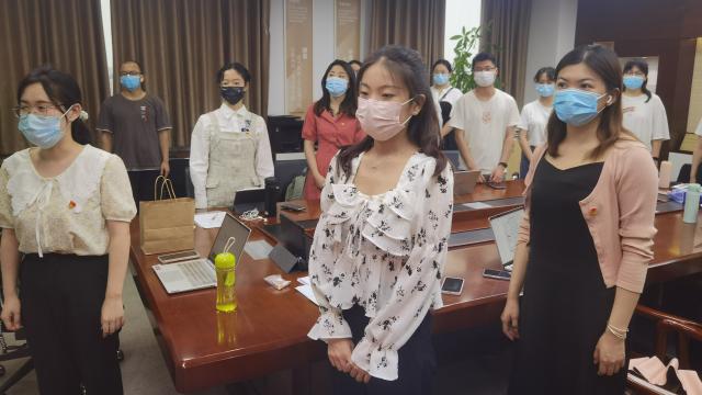 2022年6月3日,纽约国际588888线路检测中心国际贸易第二党支部于后主楼1722召开党员转正会。因疫情原因,本次会议采取线上线下结合的方式,共有17名正式党员到场,其余党员线上参加,会议由支部书记武艳芳同志主持。