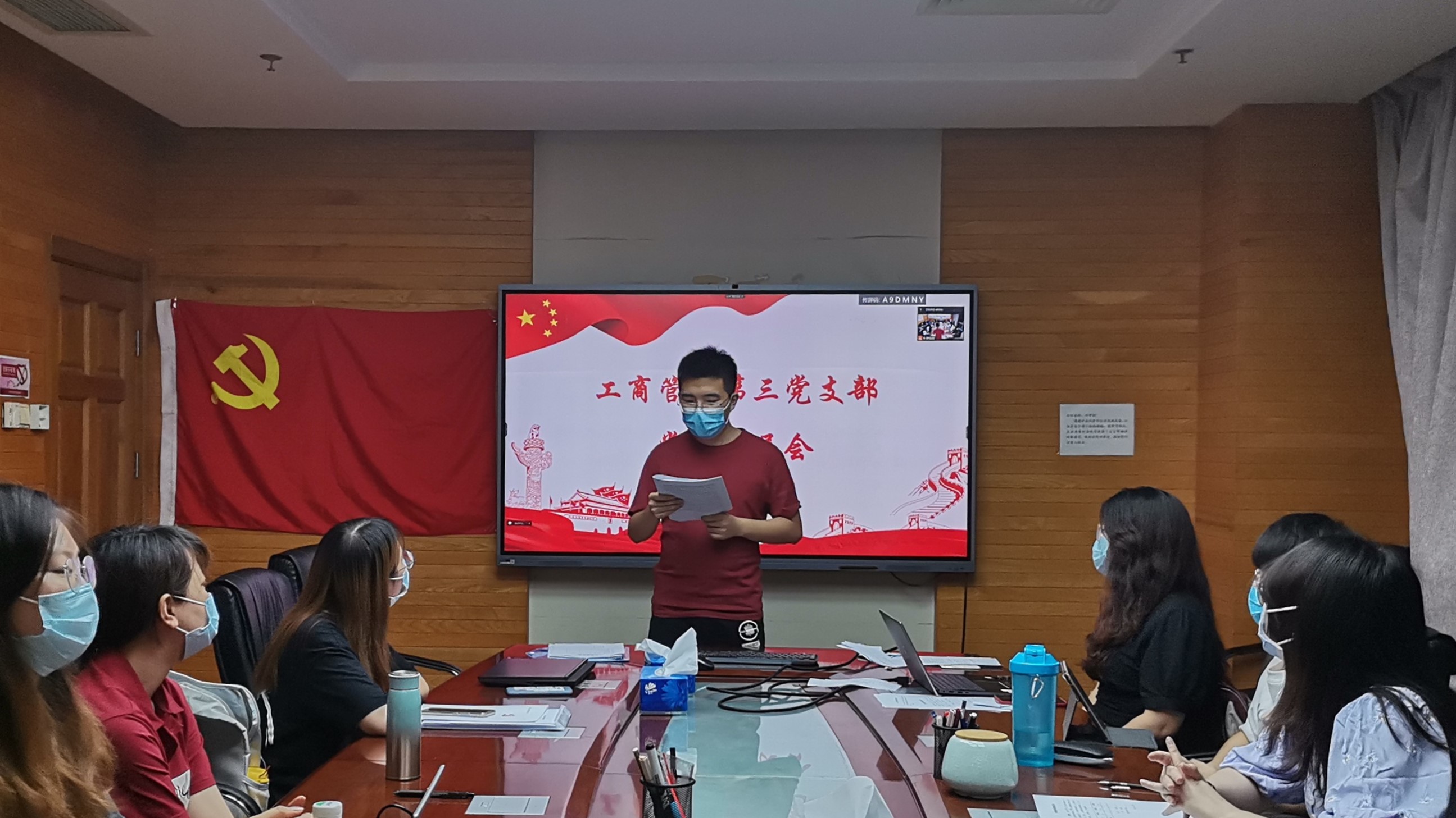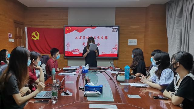 2022年6月16日,纽约国际588888线路检测中心工商管理第三党支部在后主楼1610会议室召开党员发展会,讨论关于赵航、王为凤两位同志的发展事宜。会议由党支部书记薛佳安同志主持,支部党员、发展对象、入党积极分子以线上线下结合方式参加会议。