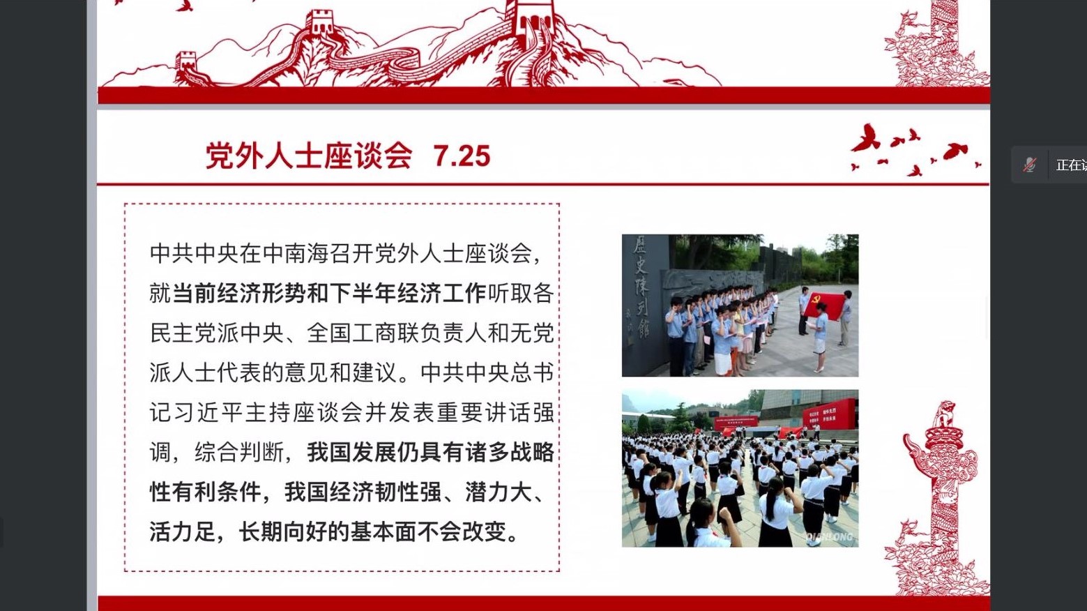 首先,全体成员对四个在七月底召开的重要会议精神进行了学习。
