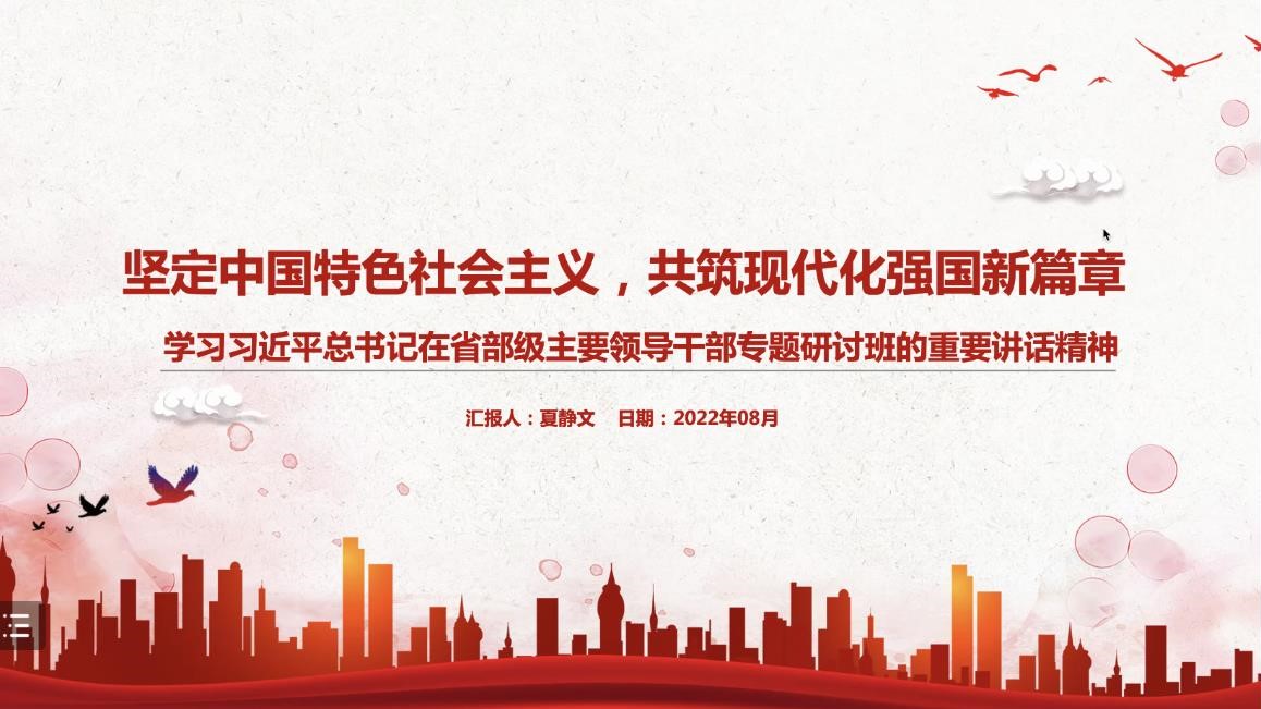 首先,夏静文同志带领大家深入学习了习近平总书记在省部级主要领导干部专题研讨班上的重要讲话精神。讲话从党和国家事业发展的战略全局出发,科学分析了当前国际国内形势,深刻阐述了过去5年工作和新时代10年的伟大变革,深刻阐释了新时代坚持和发展中国特色社会主义的重大理论和实践问题,深刻阐明了未来一个时期党和国家事业发展的大政方针和行动纲领。