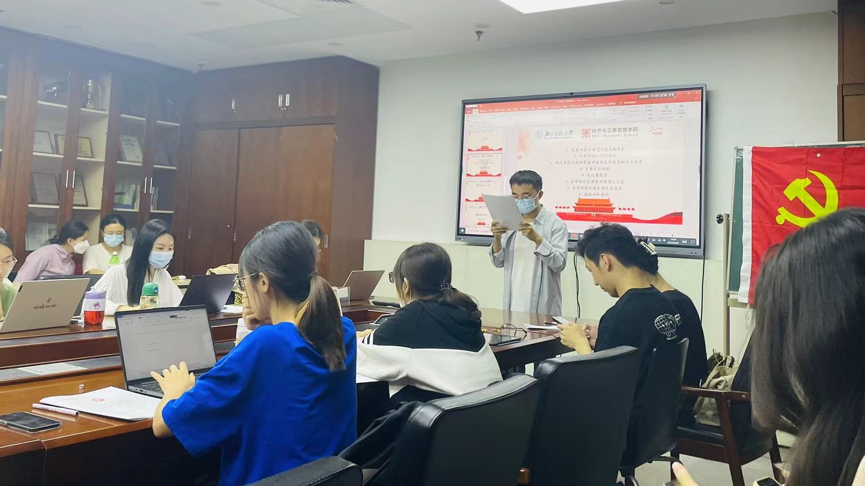 最后,党支部一同观看了电影《无负今日》。该电影由“大学”“师说”“青春”三个篇章组成,展现了北师人跨越120年的师道传承和不变风骨。通过集体观看《无负今日》电影,支部各同志对“师道”有了更深的认识,对“行之知之,无负今日”的真谛也有了深刻体会。今日奋发,则明日可成。把握今日分秒,共筑祖国美好明天!