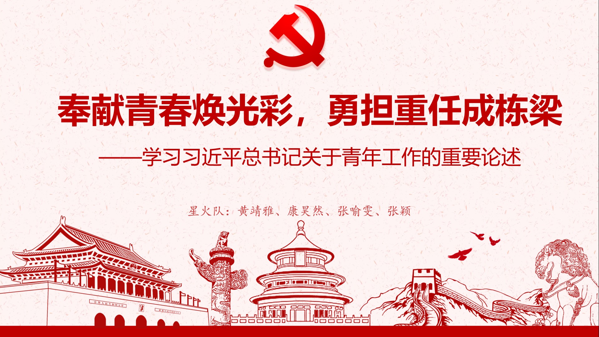 2022年9月30日,党支部线上召开主题党日活动。活动由支部书记崔思璇主持。全体成员集体学习了习近平总书记关于教育、青年工作的重要论述。以张颖为组长,黄靖雅、康昊然、张喻雯为组员的学习小组“星火队”经过前期准备,为大家带来了一堂生动有趣的党课。他们以“奉献青春焕光彩,勇担重任成栋梁”为主题,从“责任”、“理想”、“道德”、“才干”等四个方面解读习近平总书记对青年的殷切嘱托。大国栋梁,踔厉奋发;鸿鹄之志,为国为民。习近平总书记强调:“历史和现实都告诉我们,青年一代有理想、有担当,国家就有前途,民族就有希望,实现我们的发展目标就有源源不断的强大力量。”星火队以黄文秀师姐、《无负今日》中的鲁迅先生、“优师计划”定向就业师范生为例,结合大家在学习、学工、生活中面临的困难和挑战,向大家呼吁道:时代呼唤担当,奋斗成就未来。我们要牢记习近平总书记的殷切期望,锤炼品德,勇于创新,深刻理解把握时代潮流和国家需要,敢为人先、敢于突破,在肩负时代重任时行胜于言,在真刀真枪的实干中成就一番事业。