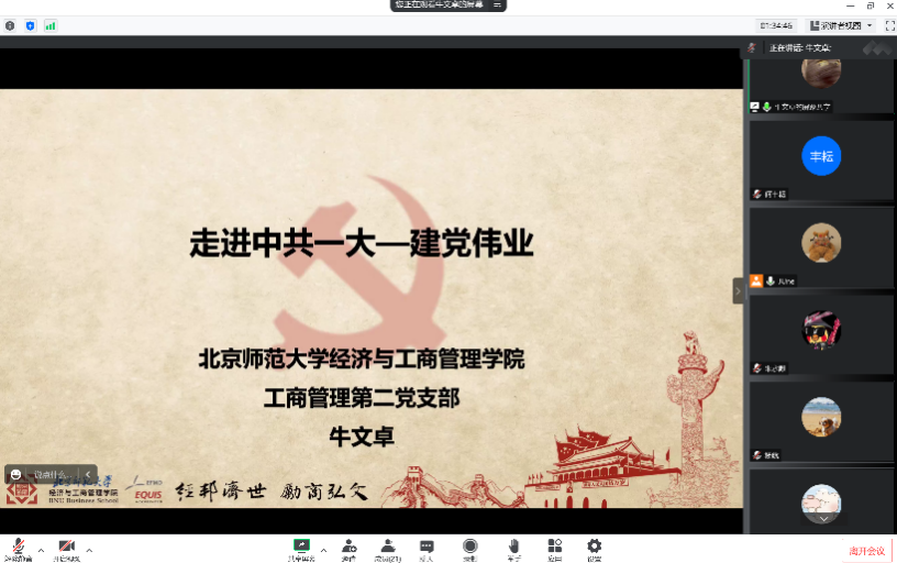 2022年11月30日,纽约国际588888线路检测中心工商管理第二党支部召开全体党员大会,讨论赫昭然同志、张佳雯同志和朱永麒同志的发展事宜,并进行“党的伟大征程——从一大到十九大”专题理论学习。本次会议采用腾讯会议的形式召开,会议应出席有表决权正式党员9名,实出席有表决权正式党员9名,支部书记史玖琦同志主持会议。
