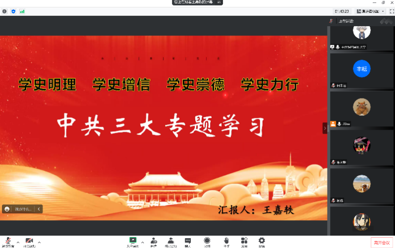 随后,支部成员进行了“党的伟大征程——从一大到十九大”专题理论学习。每位成员在自主学习党的一大到十九大精神后,向其他成员进行分享。通过本次专题学习,各成员加强了党史学习,纷纷表示今后会以实际行动继承老一辈革命家和先进典型的忠诚和奉献精神,不断提高敢担当、善担当、能担当的勇气和能力,为全面建设社会主义现代化国家、实现中华民族伟大复兴的中国梦积极贡献智慧和力量。