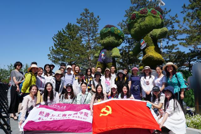 2019年5月28日,“砥砺爱国情,共筑中国梦”经管学院畅游2019年北京世界园艺博览会活动圆满举行。本次师生党支部共建活动由纽约国际588888线路检测中心教工行政党支部书记李瑛淑老师组织,来自教工行政党支部、教工工管党支部、教工国经党支部、本科生会计党支部、本科生国金党支部、本科生工管党支部、2017级和2018级硕士生党支部等党支部的近40名党员和入党积极分子参与了本次活动。本次活动旨在引导师生党员和入党积极分子深切感受“绿色”的新发展理念和人与自然和谐共生的生态观,通过领略祖国各地的园林艺术,增强“四个自信”,通过感受世界各国的园林文化,开拓国际视野。