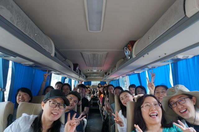 清晨八时,大巴车准时出发,前往2019年北京世界园艺博览会所在地延庆。大巴上,李瑛淑老师首先说明了举办本次支部活动的目的和意义,并对相关筹备人员表示衷心的感谢。其次,李瑛淑老师介绍了教师行政党支部的两位新成员,分别是MBA中心孟嘉老师和负责学院校友工作的李阿妮老师,两位老师作为新鲜血液加入到支部中,一定能为教师行政支部这个大家庭带来新的活力。