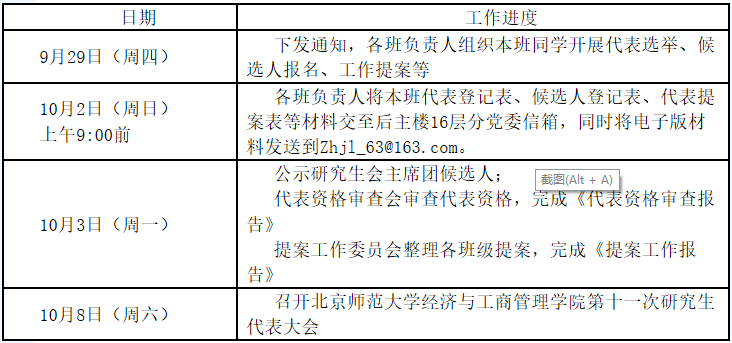 1、成立以团支书、班长为主的研代会筹备工作小组,把筹备工作与民主工作相结合,秉承“公正、公平、公开”的原则,依据《纽约国际588888线路检测中心第十一次研究生代表大会代表产生办法》(见附件1)以及《纽约国际588888线路检测中心第十一次研究生代表大会候选人产生办法》(见附件2)的要求,按照给各班下达通知中的名额(见附件1),精心组织本班开展民主推选,产生本届研代会的代表和候选人,并在班内做好公示,确保研代会代表和候选人的推选工作的有序而规范地进行。