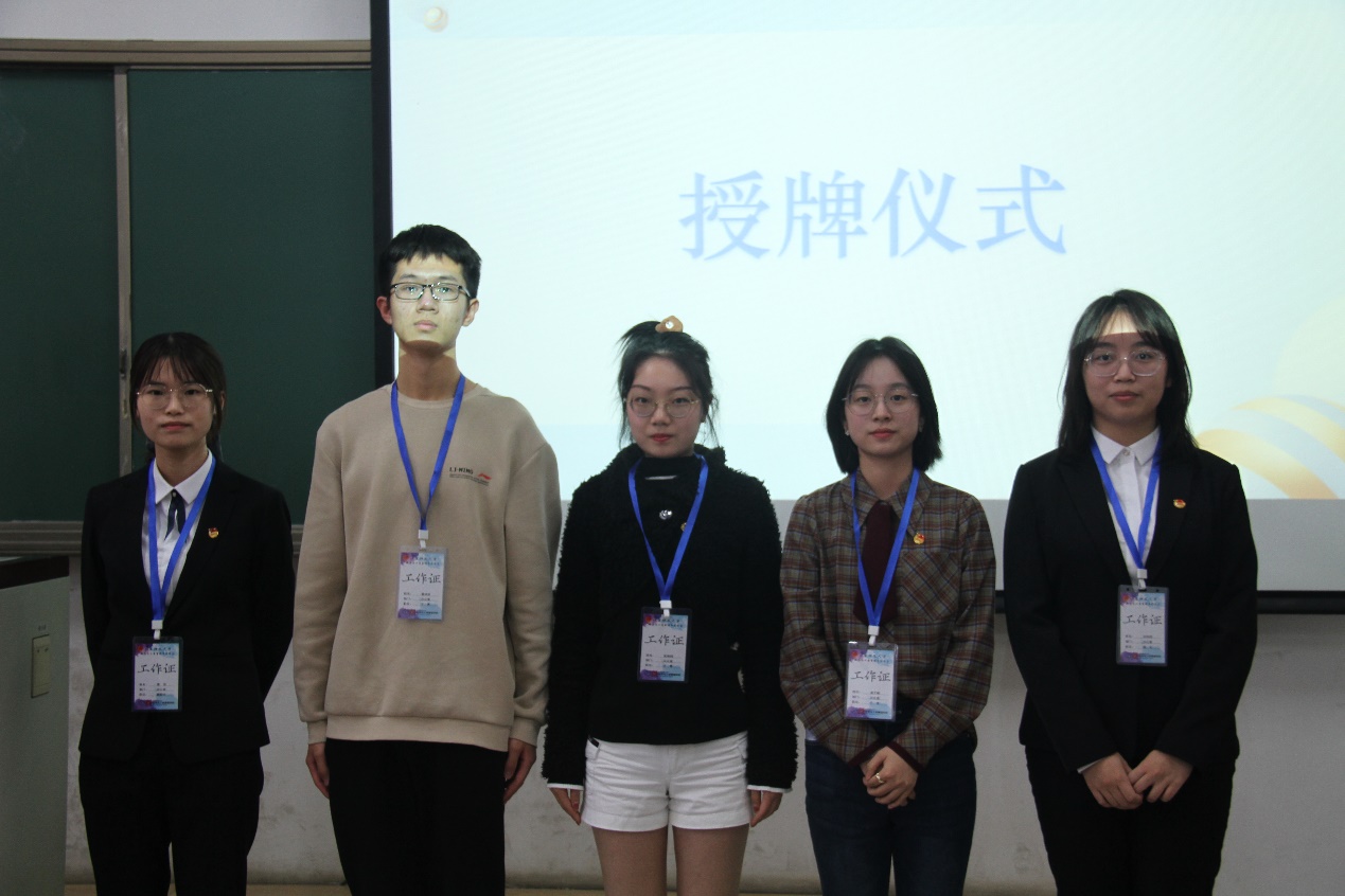 第八届团委副书记李龙迪同学为新任团委副书记宋继龙、张可欣同学授牌。