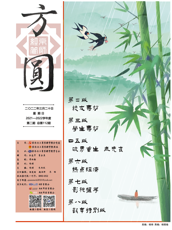 《方圆》第112期新刊预览!本期《方圆》由校友专访、学生专访、破界重生-鹿先森、热点经济、影视推荐、新年特别版等版块构成,紧跟时事,见解独到。万物变化中,《方圆》初心不变,愿化苍穹,日升月落,将BNU变成温暖的港湾。
